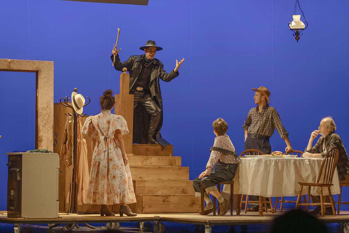 E un spectacol în care cinematograficul se întâlnește cu teatralitatea în interiorul unei estetici care trimite, desigur, la faimoasa ecranizare din anii 50, dar care exploatează până la ultima picătură toate emoțiile pe care doar teatrul le poate oferi, sprijinindu-se, de asemenea, pe forța convențiilor pe care doar teatrul le poate asigura. Rezultă o tandră hibriditate în care tehnicienii Teatrului „Maria Filotti” fac parte din echipa de producție a „Studiourilor TMF”, totul se înregistrează, se trag sub ochii noștri duble, se mută decoruri specifice platourilor de filmare, se exersează stiluri de joc á la cinema, dar în care se și apasă ca la teatru, se livrează intensitate a prezenței, se trăiește cum numai pe o scenă se poate trăi. Formula funcționează excelent, servită de ciclorame ce rămân prinse în memoria noastră vizuală, de familiaritatea unor obiecte pe cât de banale, pe atât de intime (un aragaz, un cactus solitar, niște scaune din lemn), dar și de o distribuție foarte puternică ce ne oferă personaje clare și adânci.